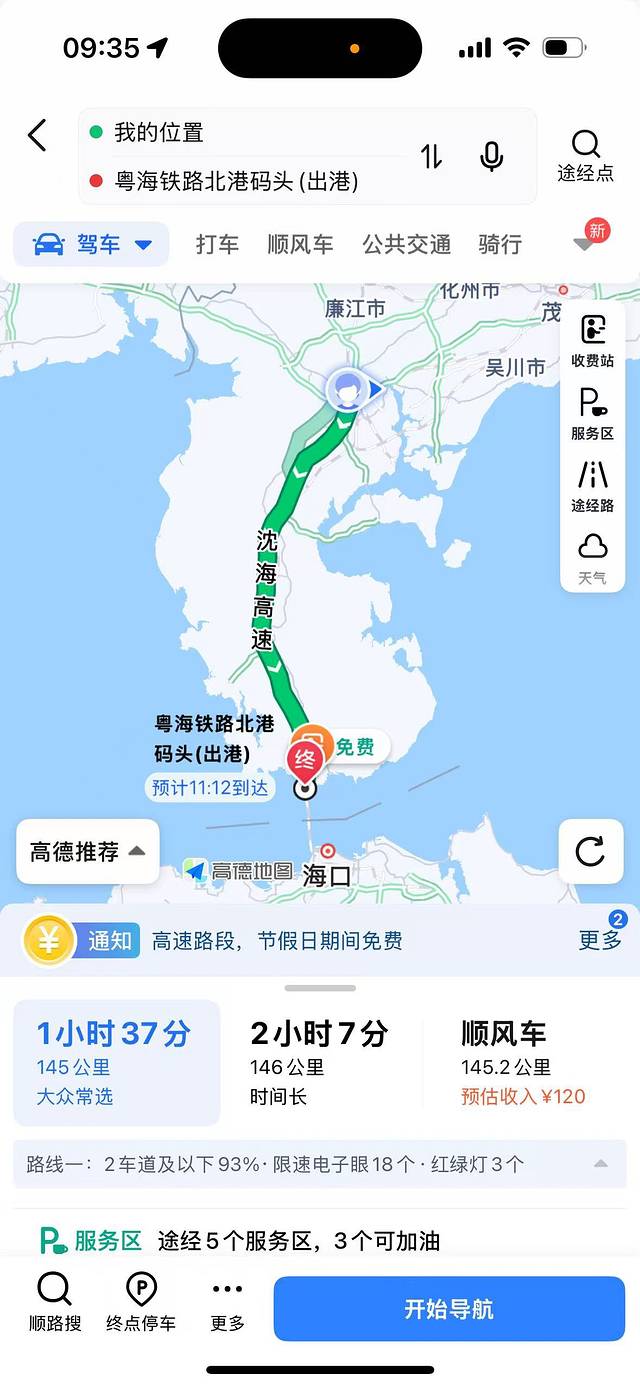 今天是上岛但仍然不用早起的一天~距离粤海铁路北港还有145公里,一个半小时就到了,我们睡到快八点起床,下楼慢悠悠吃了早饭,收拾完毕9:30准时出发港口。这里说一下,今年春节期间,乘船过海都需要提前在小程序预约购票,不能现场买票,我早早的买好了我们两台车的车票和大人孩子的船票,轿车374元/台,大人41.5元,孩子22.5元。我预订的下午13:50的船票,11:30左右我们到达港口,直接就安检取票进场等待上船了,大概12:30就开车上船了,12:50提前一个小时就发船了,航行一小时二十分钟,两点半我们就下船了,真的是太顺利了~一个月前定行程的时候琢磨赶了好几天路又折腾坐船到今天肯定该累了,就定了在海口住一晚,下船开车几分钟就能到的海口桔子酒店(西海岸会展中心店),这个桔子酒店是1月份刚刚开业的,房间超大超级超级新,我提前一个月预订269元/间双床房,到酒店看房价已经涨到400多一间了,酒店还有洗衣房,积攒了好几天的脏衣服都在这给洗了哈哈~距离海边也很近,下午还带孩子们去海边玩了会儿,然后我们就出发板桥海鲜市场去吃海鲜大餐啦~自驾游那必须要吃好喝好~