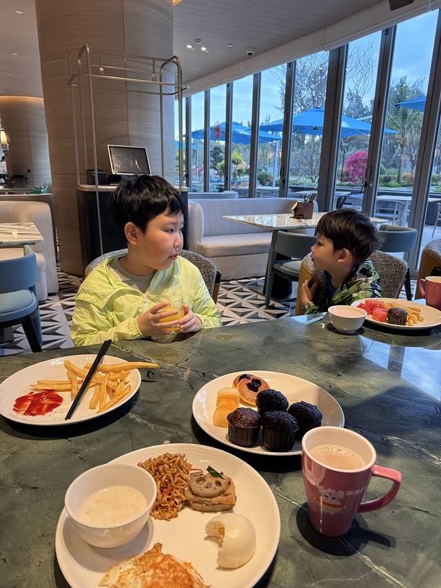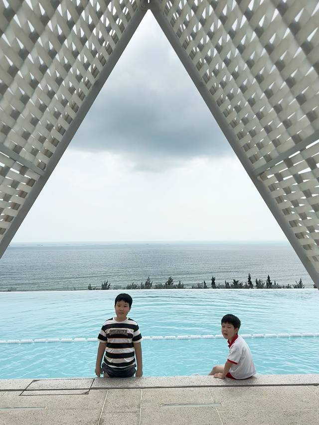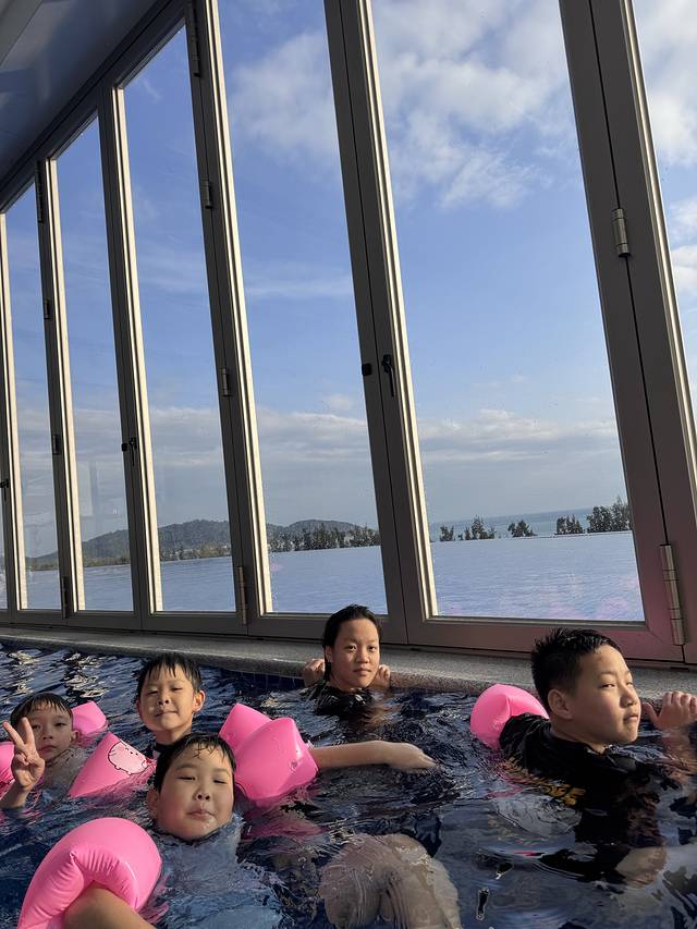 今天依旧泡酒店~酒店送了旅拍,吃完早餐赶紧去拍了,上个酒店因为生病就没拍到。效果出乎意料的满意,果然还得是人家摄影师拍呀~下午孩子们接着泡恒温泳池,等我突然想起来酒店还有个21楼的玻璃泳池,已经傍晚6点多了,泳池关闭了,太可惜了,不过20楼的餐厅让我们在他们的露台拍了美丽的夕阳~