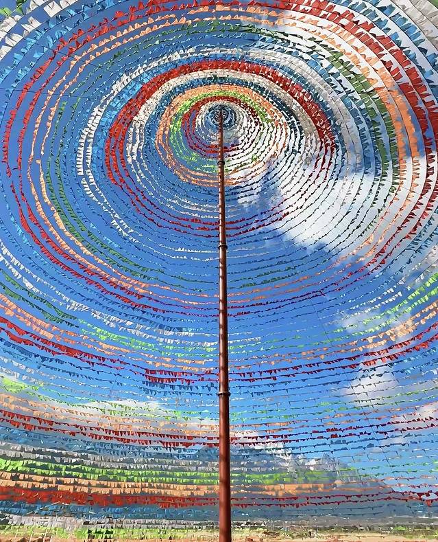 去完白沙古镇,司机说附近有个大经幡问我们要不要去,因为时间还早我们就顺道去了,没想到比想象中的还美,而且基本没什么人!