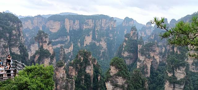 后游玩杨家界、空中田园和天子山,天子山,原名青岩山,因古代土家族领袖向大坤率领当地农民起义自称“天子”而得名,素有“扩大的盆景,缩小的仙境”之美誉,是 张家界地貌的精华代表,以“日出”、“云海”、“红月亮”、“冬雪”`“红叶”、“大峰林”为壮观,有御笔峰、仙女散花、点将台、神堂湾、贺龙公园等代表性景点。有人曰“谁人识得天子面,归来不看天下山"。后乘坐索道下山换乘接驳公交出景区。