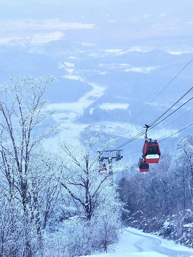 📸 机位:6号缆车终点观景台,日出时拍雪道"金龙盘山"