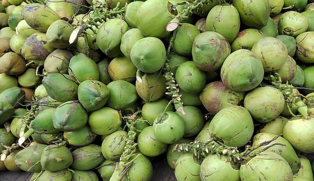 从椰林里走出来时已经是下午一点了,我感到又渴又饿。路边有一个卖椰子的小摊,摊主是一个看起来三十来岁的小伙儿,长着一张热情友善的笑脸,瘦瘦的黑黑的,是典型的本地人。他穿着一双拖鞋,悠闲地躺在树下的一张吊床上,看我坐在他的小摊旁他也并不招揽生意,而是只管在那里躺着休息。「小伙子,来一个青椰。」我冲他说道。他立即从吊床上翻身起来,挑出一个又青又大的,用刀熟练地砍出一个小口,放到我面前的桌子上。我终于喝到东郊椰林的椰子了,凉凉的,甜甜的,汁水很多,喝完这个大椰子我都饱了,既不渴也不饿了。我问他多少钱一个,他说五块,我觉得很便宜,但还是开玩笑的告诉他市里面的椰子只要三元。他连忙大声说道:「大哥可不能这样说,市里面的椰子又小汁又少,两个也不顶这一个。」我笑着告诉他确实是这样,这是我最近几天来喝的最好喝的一个椰子。