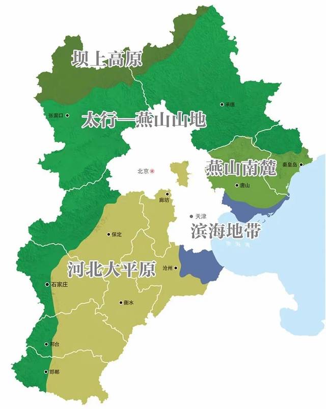 1、太行—燕山山地:大而美(承德、张家口、秦皇岛、保定、石家庄、邢台、邯郸)太行山把最巍峨的一段给了河北,燕山则独得万里长城最壮美的“篇章”。