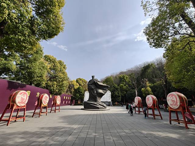 忠义广场位于白帝山北侧,占地7000平方米。广场中央是一尊诸葛亮铸像,铸像总高7.9米,人像高5米。诸葛亮手握羽扇,衣襟飘拂。铸像后面是用汉白玉雕刻制作的《出师表》碑,碑长16米、高4米、厚2米,正面书前《出师表》,背面书后《出师表》。