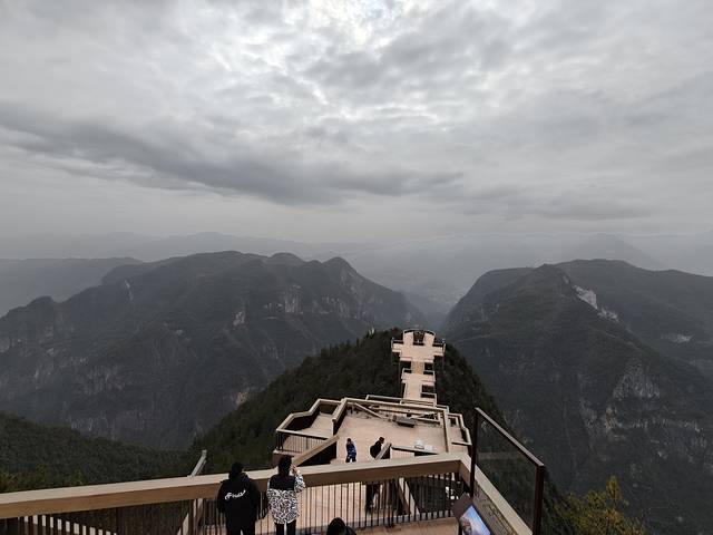 或者还可以在柳坪游客中心购买缆车票和观光电梯等套票(游客中心有几个套票,游玩整个景区要6个小时左右,看个人需要。如果要坐下午1点半的车回巫山县城,建议只去神女天路。如果继续去其他观景台,需打车回去或者乘坐下午5点的车回去巫山市区,买票前咨询一下购票员。)参观完5个观景台后继续坐车抵达另一个游客中心,近距离观赏离长江最远的巫峡十二峰之一——净坛峰。