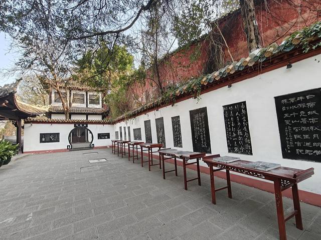 忠武堂用壁画和木刻介绍诸葛亮的生平和主要事迹,如“舌战群儒”“草船借箭”“借东风”“七擒孟获”“六出祁山”“空城计”等。