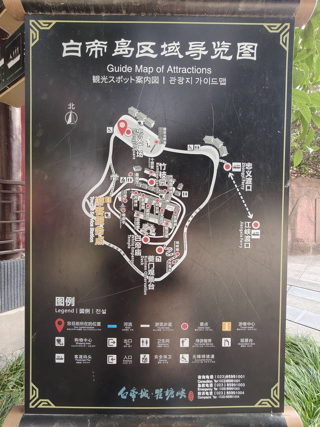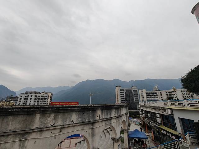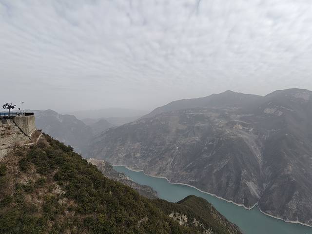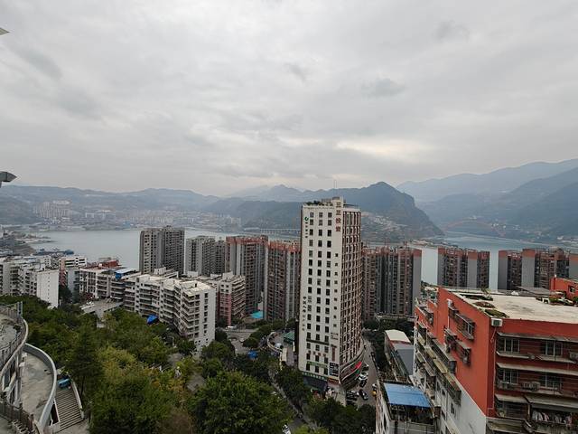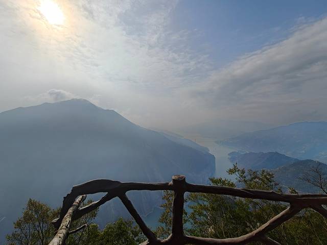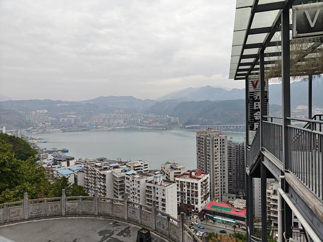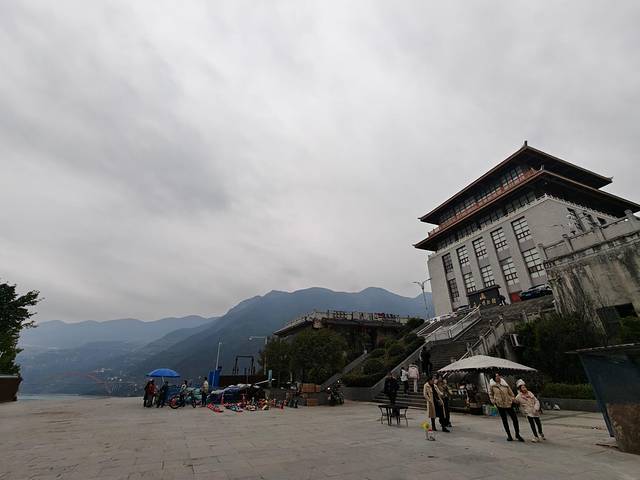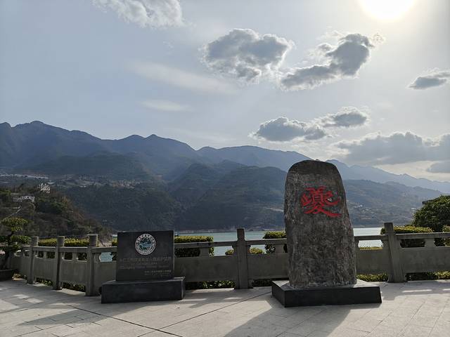 夔门观景台是整个白帝山上最接近夔门的地方。十元人民币上的夔门是航拍效果,这个观景台就在白帝庙门口的前面平台。