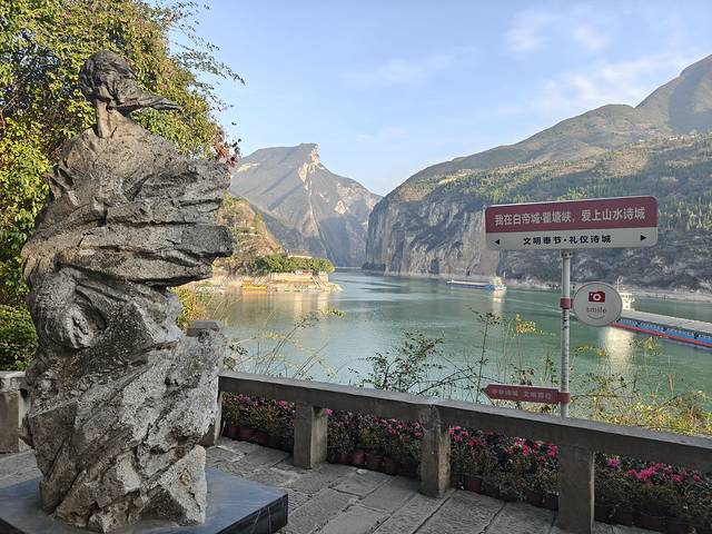 沿着夔门观景台旁边的楼梯下来就看到观峡廊和杜甫亭。