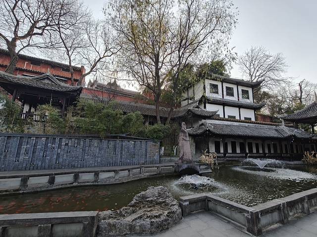 蜀汉堂在白帝庙内,正中为3尊青铜铸像,诸葛亮居左,刘备居右,二人隔案而坐,相谈甚欢,奉茶的小书童侍立于旁。蜀汉堂展现“隆中对”的历史场景。
