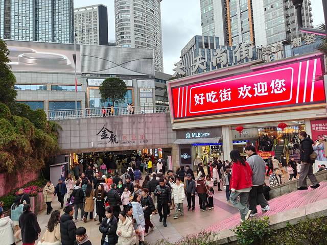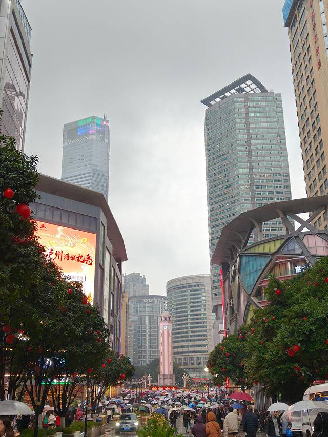 海友酒店白象居店—山城巷(七星港地铁一号站)—十大梯—秋孃孃火锅—李子坝观景平台—观音桥步行街(天天尚街LED屏幕)