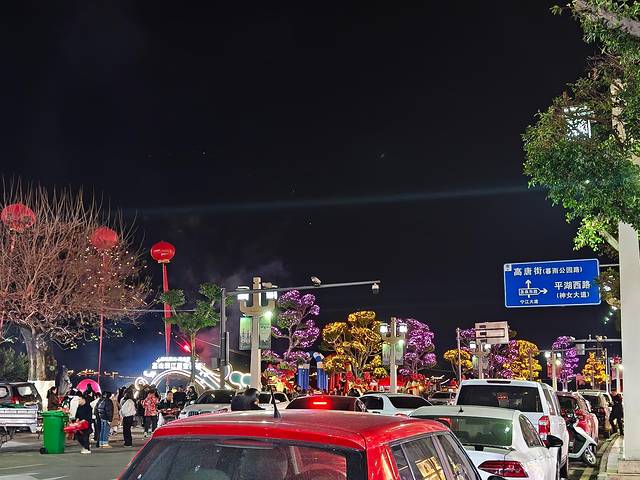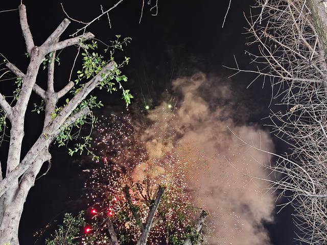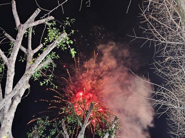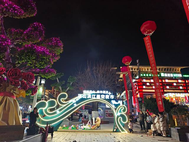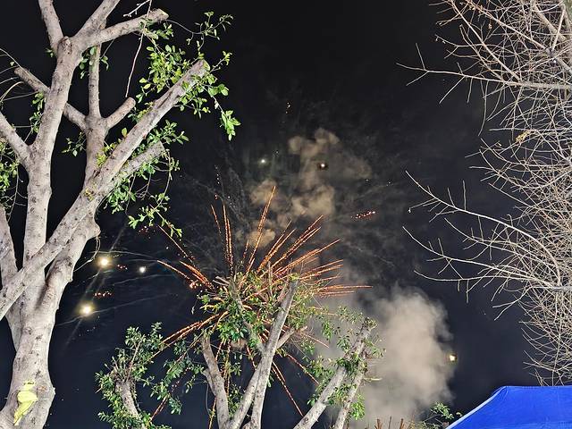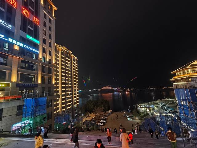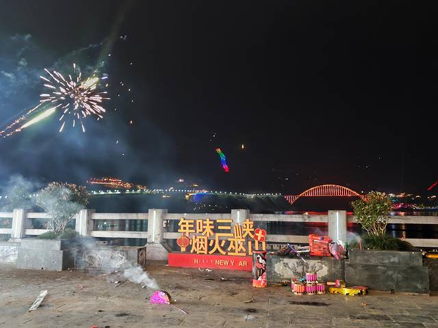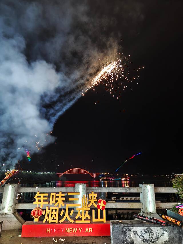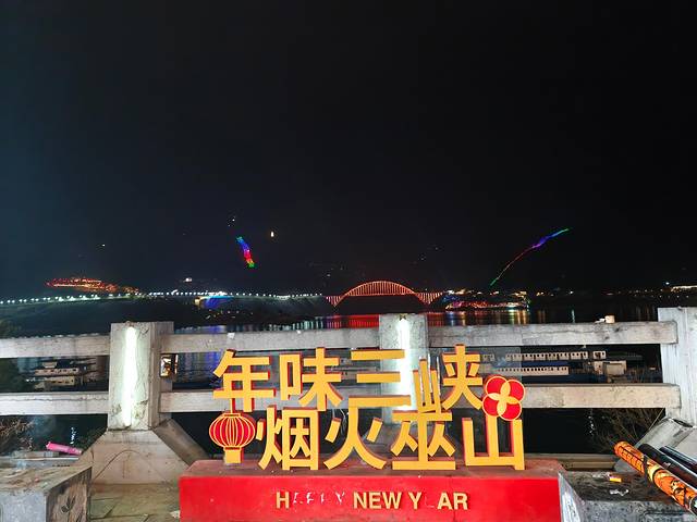 巫山江边的夜市,新年很多人在放烟火,很热闹。