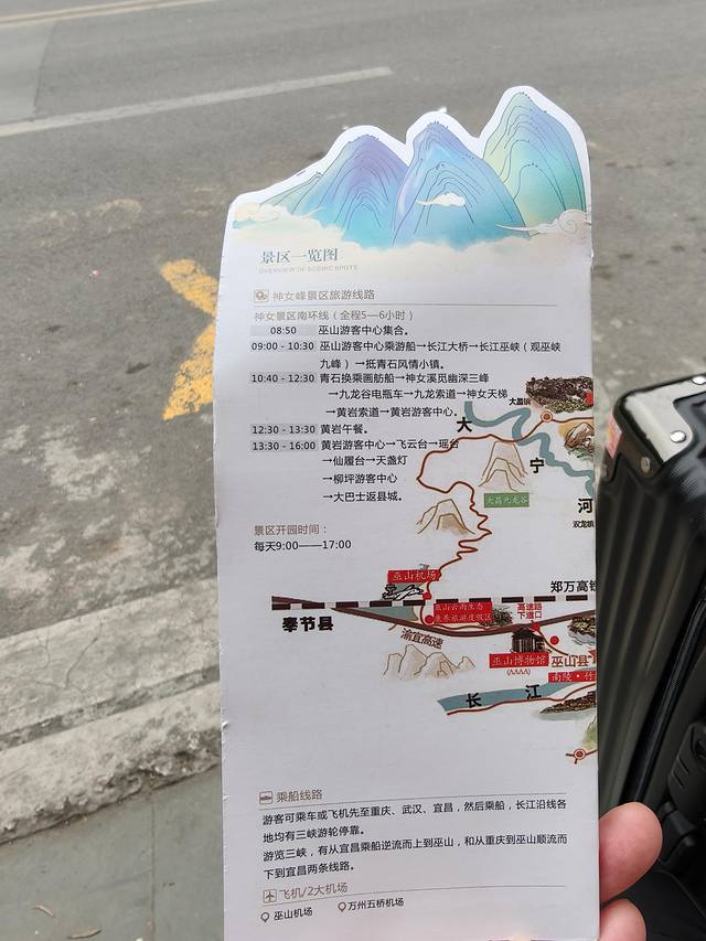 巫山游客中心可以免费寄存行李,早上9时的船游小三峡(120元的票游船。包含换小船游小小三峡),下午1时半左右回到巫山游客中心。