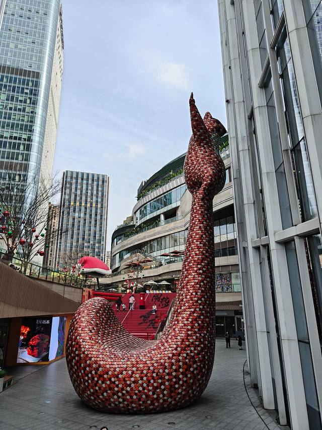重庆光环购物公园IP为——松鼠“闪闪”(Shiny),由荷兰籍艺术家弗洛伦泰因·霍夫曼定制,其总长15米、尾巴10米高,由16500片特制彩色金属片组成。