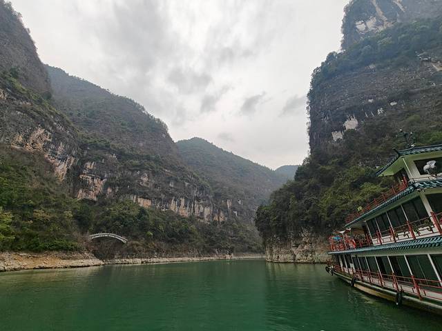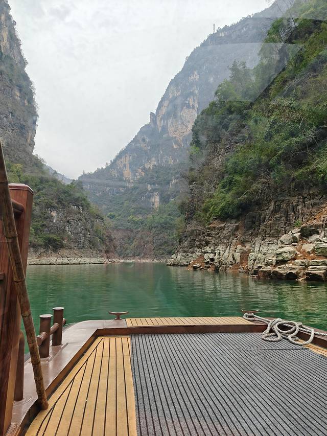 在巫山游客中心坐船(小三峡 ),上午9点和下午2点发船,人多时候每个时间点不止一班船,全程回到码头3个半小时。中途换小船游览小小三峡 ,再回到原船返回。船分三层,一层开放前甲板(返回时候关闭不开放),二层开放后甲板,三层是有顶棚的露台(额外加钱 ),一二层室内有空调,去程有解说,大船小船都有推销,买不买自便。去程一层前甲板观景就不错,回程可以到二层后甲板观景。