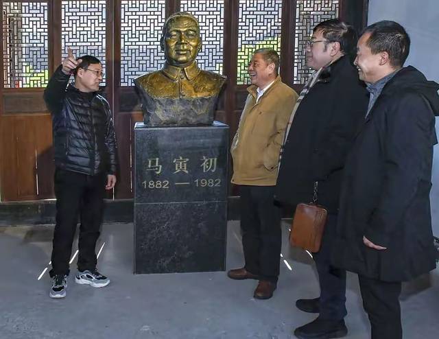 吃完一路往北,先去马寅初故居。这栋清朝光绪年间的大台门,被列入第六批“国保”,是马寅初父亲马棣为全家和经营酒坊所建,北边临街一面便是当年的马记酒坊。台门内共三进,有40间屋,1882年,马寅初出生于第二进西厢房。故居一楼进行了复原,二楼设有马寅初生平介绍。