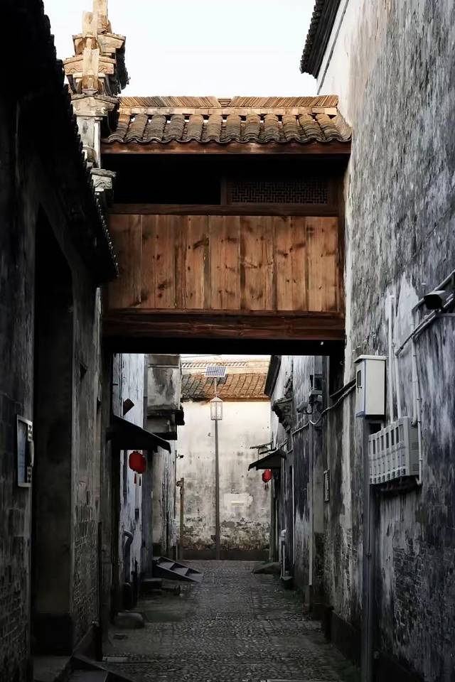 下午坐公交去崇仁古镇,下车后走5分钟,穿过两堵漂亮的跨街枋墙,就进入了古镇的范围。其历史至少可以追溯到北宋,受宋神宗敕封的义门裘氏从婺州分迁至此,因裘氏崇尚仁义,故命名“崇仁”。