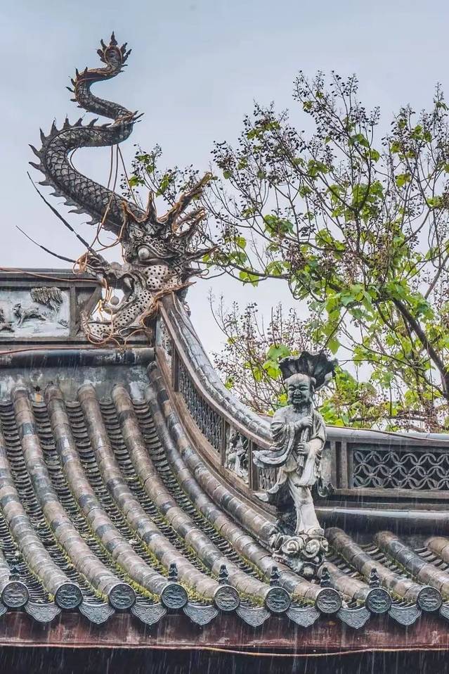 现存建筑为清嘉庆年间重修,庙内的木雕、砖雕、石雕十分精彩,世称“江南三绝”,其中尤以木雕繁复精致,遍布斗拱、雀替、梁、枋、椽、桁。