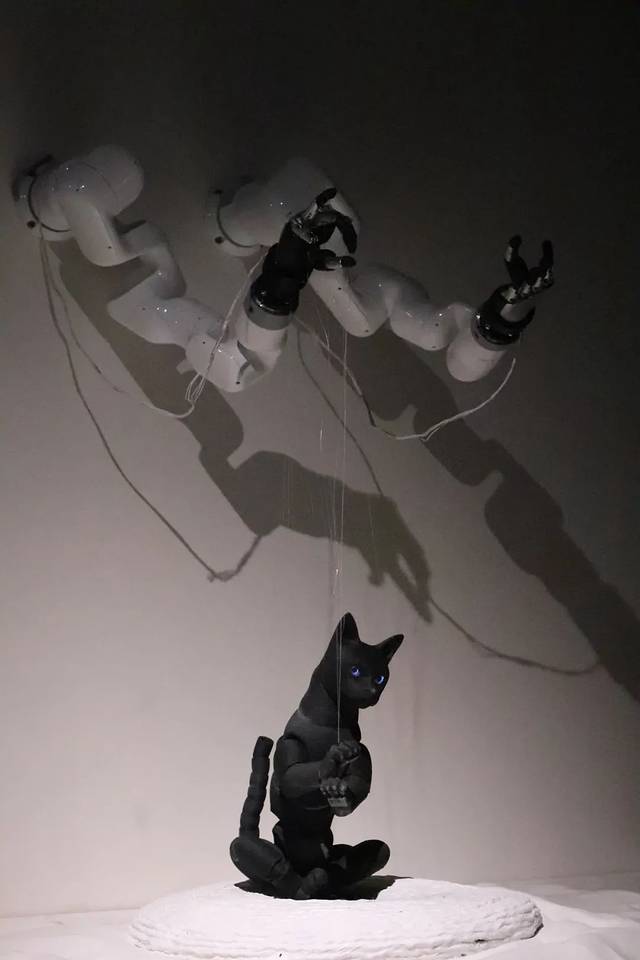 花花第一次尝试和机械臂互动装置《占卜屋》共同完成一件艺术作品,在输入出生日期之后,经过小黑猫的“操作”下,获得一张专属的签文。