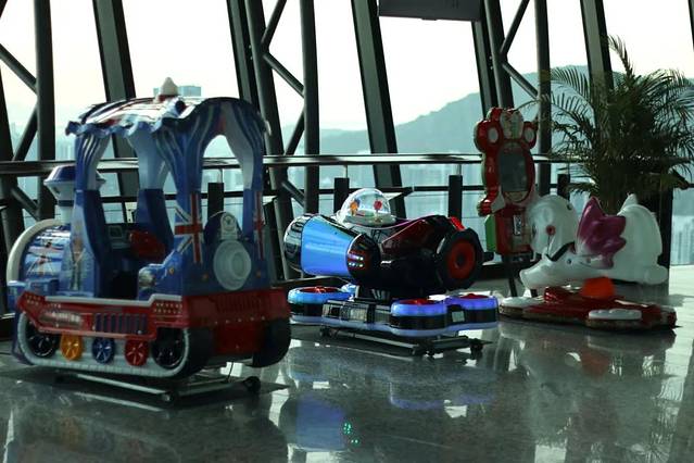 在澳门塔上,视野开阔,澳门半岛、氹仔、路环乃至珠海横琴的风光尽收眼底。观光层设有舒适休息区和望远镜,逛累了就能稍作停歇,俯瞰澳门迷人景色。