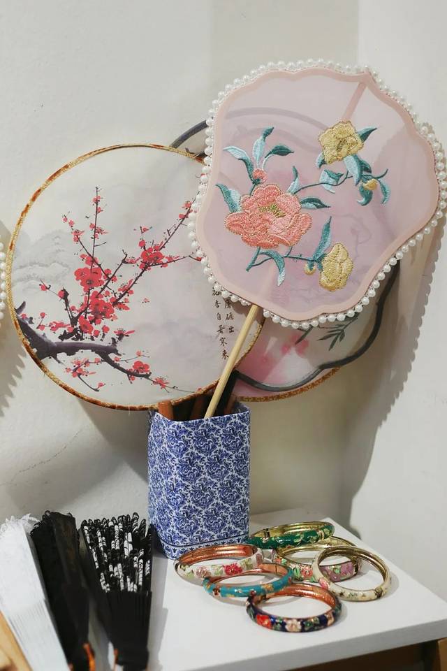 不仅如此,体验馆还贴心地提供专人协助的简易盘发服务,根据所选的旗袍款式与个人气质,精心设计发型,让整体造型更加和谐统一。同时,馆内还准备多款手袋、扇子等摄影道具,定格每一个美丽瞬间。