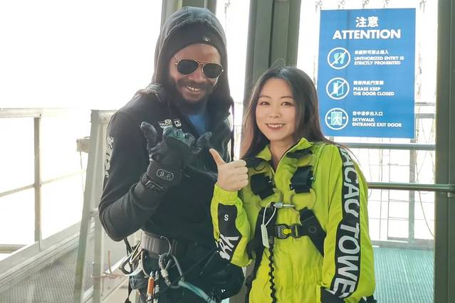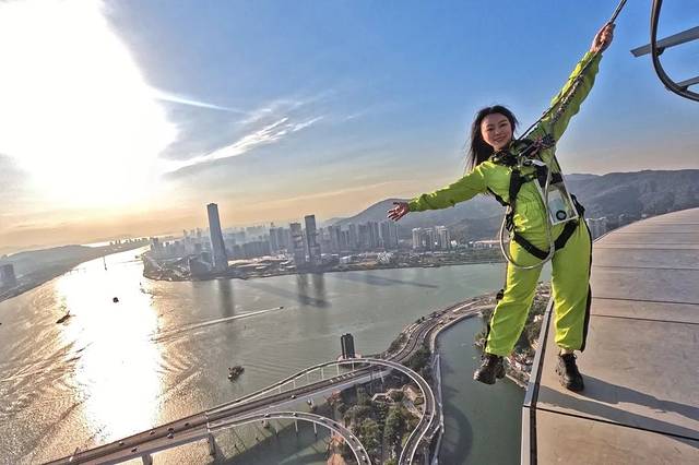 当我慢悠悠地走在平台,内心觉得惊险又刺激,而且教练超贴心,一直在鼓励我,城区的繁华和大海的辽阔尽收眼底。走走停停,摆各种搞怪姿势拍照,张张都能刷爆朋友圈。