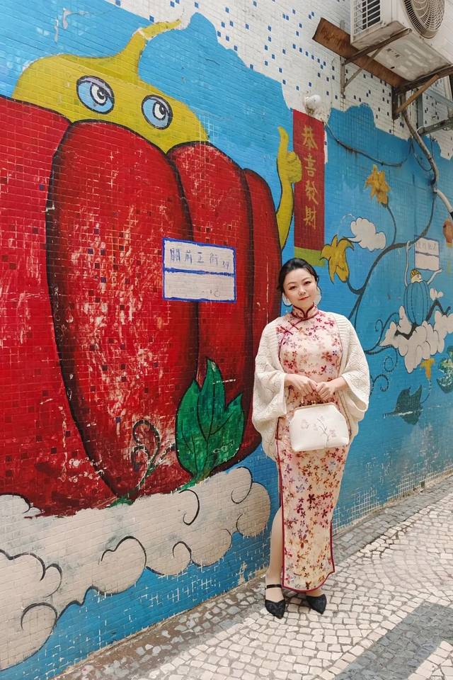 花花之前似乎也没有想到过,旗袍和澳门是如此相称。