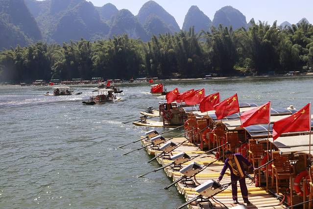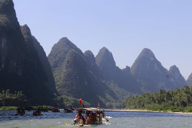 1.漓江竹筏:需要排队兑换纸质门票,一般都是拼竹筏4人,想包竹筏需要补差价。