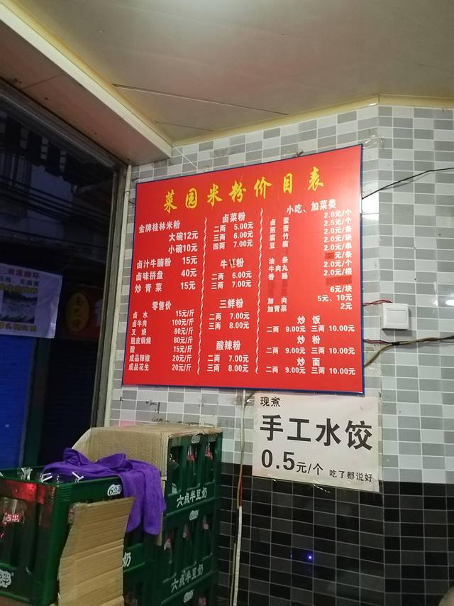 关于桂林米粉:价格是5元(包含锅烧/卤肉),点卤菜粉二两,加锅烧或卤肉,24小时营业。