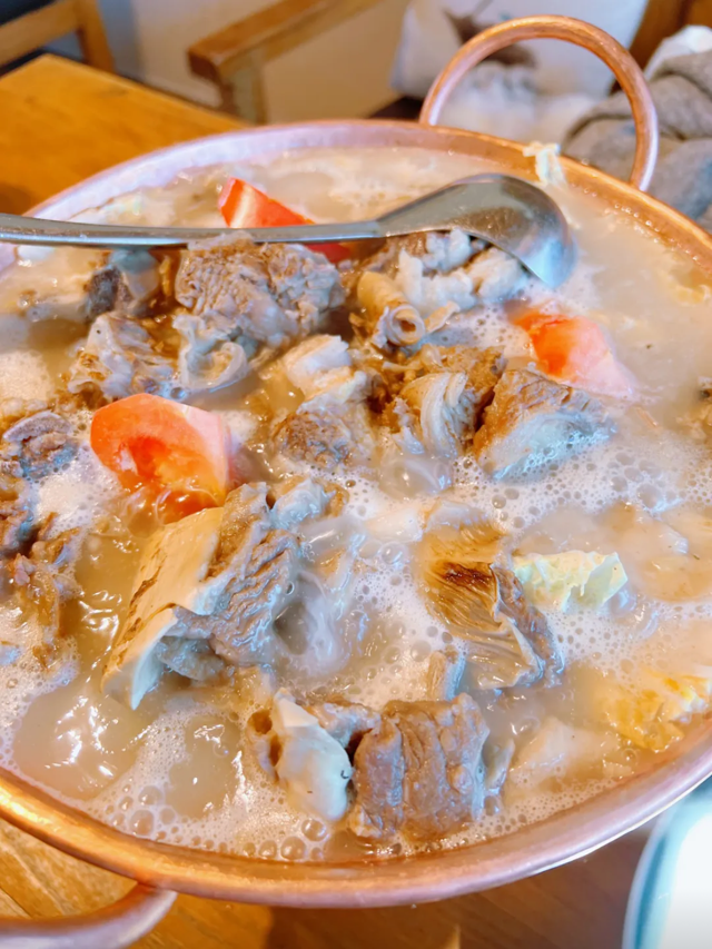 精选丽江本地土猪排骨,经传统工艺腌制风干,腊香浓郁,肉质紧实。搭配秘制汤底,加入菌菇、时蔬等新鲜食材,煮沸后香气四溢,令人垂涎三尺。夹一块腊排骨,蘸上特制蘸料,入口咸香四溢,回味无穷。