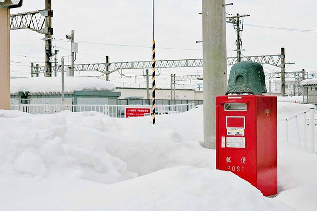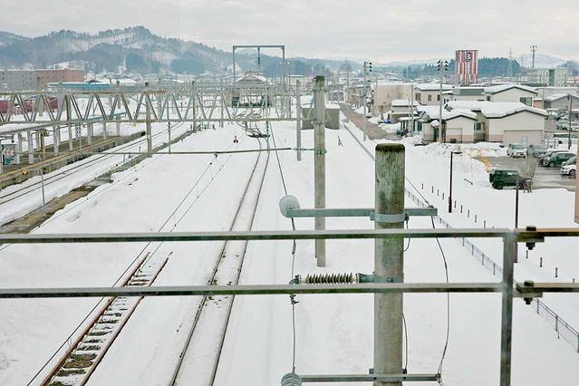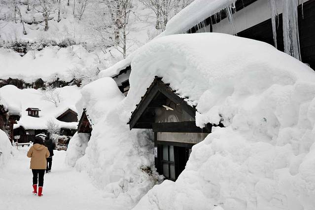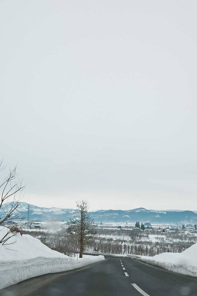 但是车子经过田泽湖的时候一切都不一样了!!溪流边、山涧里积雪真的是目测有40cm以上,房檐上边更甚,似乎不堪负重的样子。终于来到雪国了!我开始充满期待。