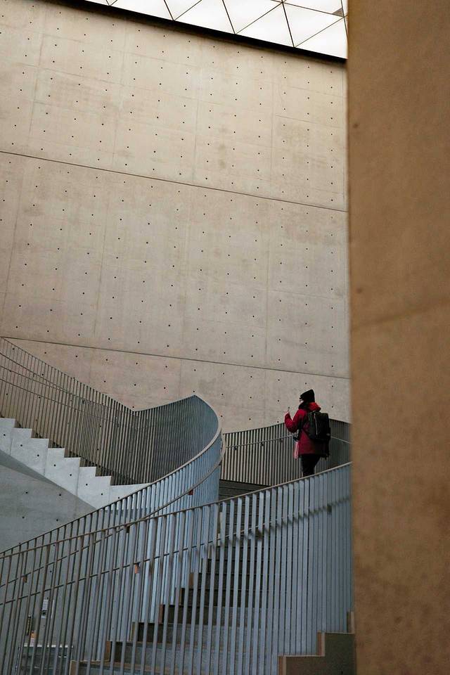 美术馆是安藤忠雄设计,螺旋而上的楼梯很好出片。欣赏完艺术作品去到二楼,顿觉眼前一亮。