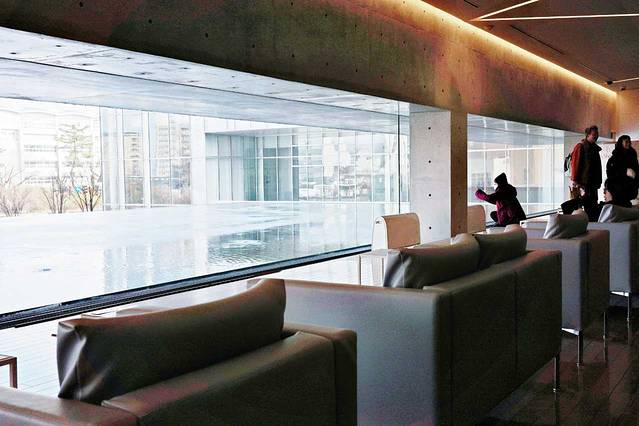 秋田的县立美术馆一般是大家去秋田会打卡的。这儿距离车站不远,对面还有“千秋公园”。夏季时候荷花盛开,也是杜鹃花和樱花胜地。