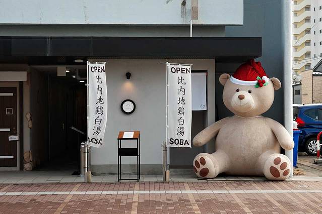 这一日打卡的拉面店有所不同,印象深刻。不同于一般老式的传统拉面店,这家店门口有一只巨大的熊很吸睛不说,店面氛围更像是很洋气的酒吧。