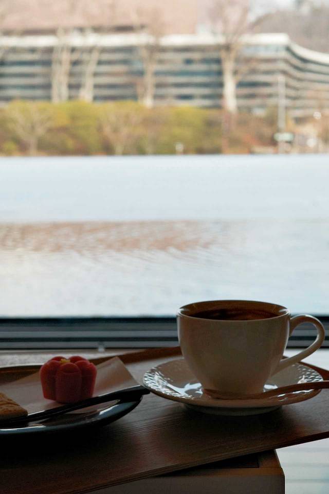 点一份和果子套餐,刚好可以眺望到冬季晴日的千秋公园。