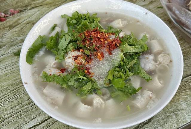 我打车去的是光荣路上的岳记羊肠馆,一个徐志胜来沧州早起都要吃的沧州美食,我也来一探究竟!要了一碗20元的羊杂,加上香菜和辣椒,开造!醇厚的汤底,配上鲜嫩的羊肠,鲜香的羊肠子汤瞬间驱散寒意。