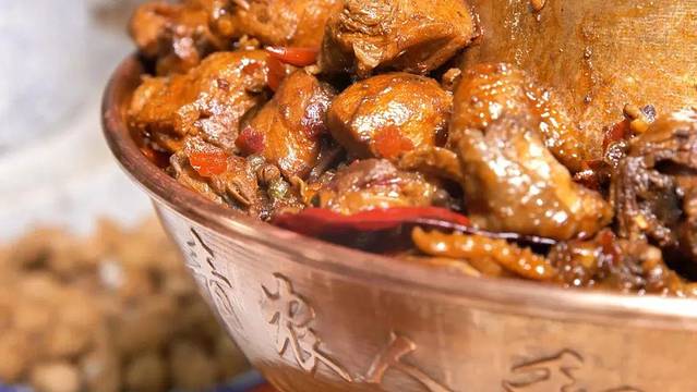 他家菜单上,火锅鸡有三种口味可选,酱香、微辣跟麻辣,能满足各种口味偏好。我选的微辣,鸡肉一上桌,香味瞬间就钻进鼻子里,那色泽,红亮诱人,光看着就忍不住流口水。鸡肉炖煮得相当入味,轻轻一咬,肉就脱骨,鲜嫩得很,微辣的口感刺激着味蕾,咸香中带着恰到好处的辣,越嚼越香。