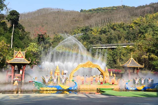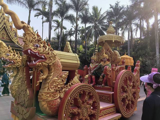 曼听公园说的傣王的行宫,所以里边每天都有相关的表演。比如大王和王妃巡游,如图所示。公园里有无数个“王妃”在拍照打卡。