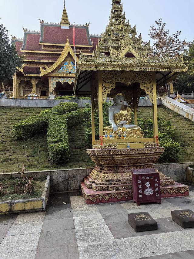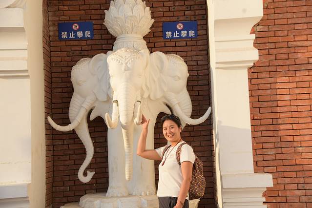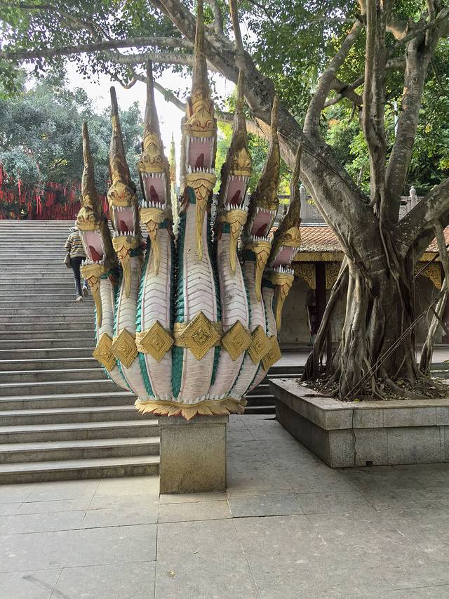 这是在滴滴站点等车的地方,大佛寺,票价120元,是西双版纳最贵的门票。我妈70周岁以上,属于免费的,等车来的十分钟,让我妈进去,溜达溜达,拍几张谍照出来。