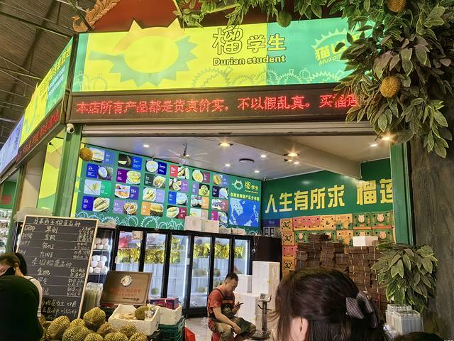 这是在曼阁水果市场买榴莲的摊位,挺好吃的,200左右买了一个小的猫山王,现吃,冰冰凉凉的,冰激凌口感。