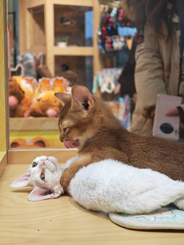 之后我们又去了对面店铺,听工作人员说对面也是他们的店。但对面主要是猫、狗、鸟类。我们去时,里边有展示柜展示了几种毛孩子。不得不说,所有动物幼崽时期都好可爱 啊!!