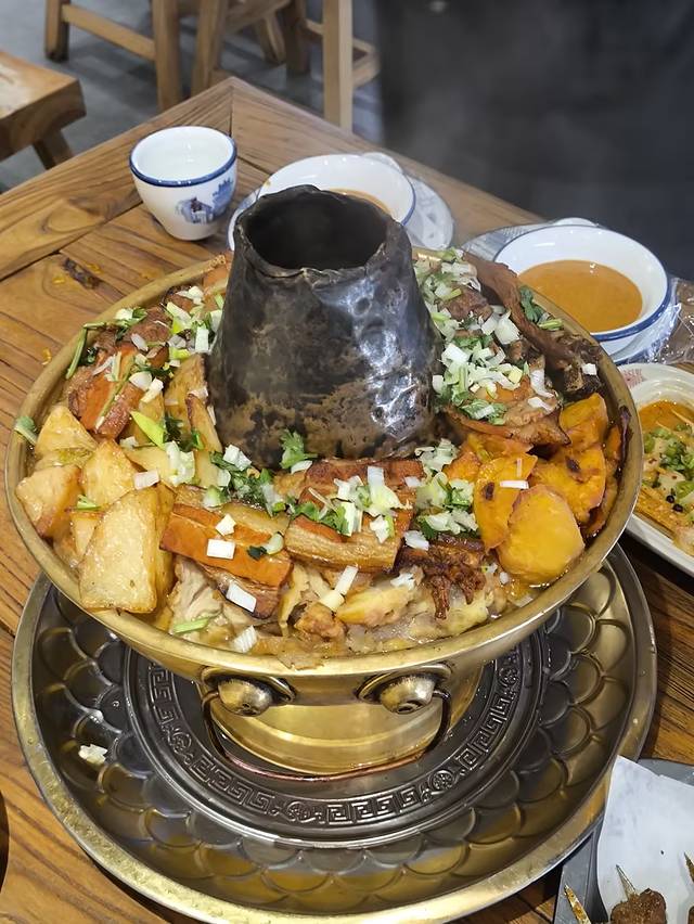 平遥 古城老赵家 山西 铜火锅作为 平遥 古城内备受推崇的铜火锅店铺之一,这里的铜火锅汤底醇厚,食材新鲜,每一口都能感受到食材的鲜美和汤汁的浓郁。特别是在寒冷的冬季,围坐在铜火锅旁,品尝着热气腾腾的美食,感受着店内的温馨氛围,让人难以忘怀。此外,老赵家还特别提供火锅秘制蘸料,由多种香料和调味品精心调制而成,口感丰富,既能提升食材的风味,又能满足不同食客的口味需求。