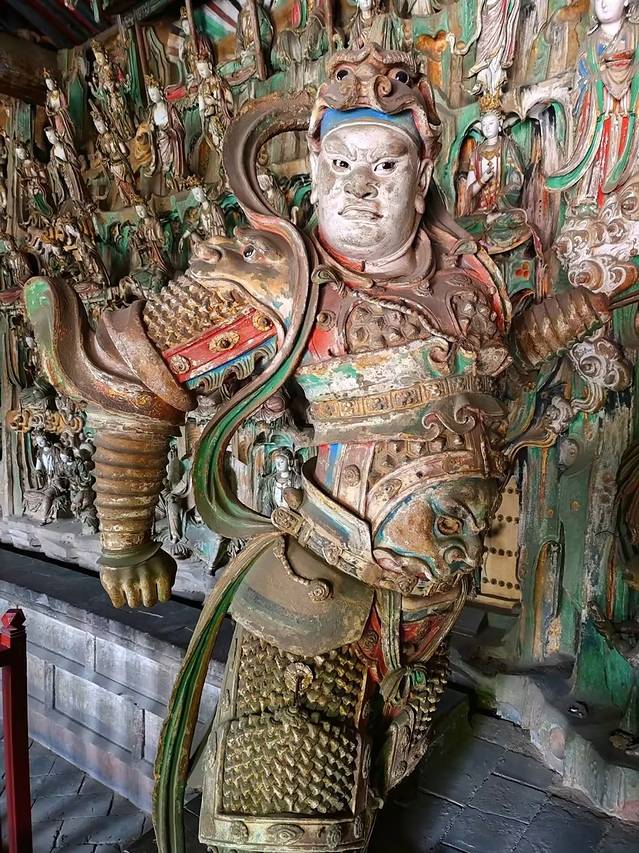 一踏入双林寺,便仿佛置身于一个彩塑的艺术殿堂。这些彩塑不仅造型优美,而且神态各异,栩栩如生。无论是端庄慈祥的佛像、威风凛凛的天王,还是生动活泼的罗汉、天真可爱的童子,每一尊都刻画得细致入微,让人不禁对古代工匠的精湛技艺感到赞叹。其中,千佛殿内的韦驮像尤为著名,他身披铠甲,手持金刚杵,身姿矫健,气势磅礴,被誉为“东方的大卫”。
