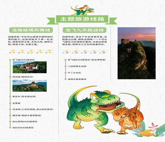 线路简介:这是一条融合历史文化、田园风光与户外冒险的特色线路,将云阳世界地质公园的三国文化、生态农业与极限运动巧妙结合,适合喜欢挑战自我的游客。