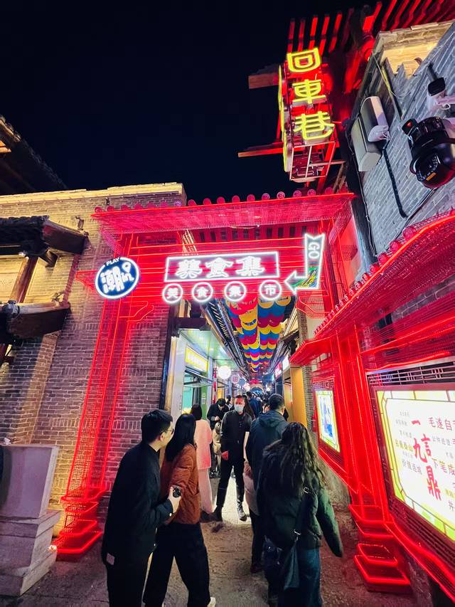 回车巷坐落在邯郸道里,这是一条灯火辉煌的商业街,夜晚人头攒动,烟火气十足