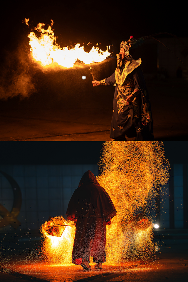 3月1日、2 日晚上的非遗民俗表演在我心里也能排到top前三,表演时长长达一个多小时,变脸吐火、火壶、烧龙灯、打铁花这四个表演“火力全开”,我只能说有看头!相当有看头!