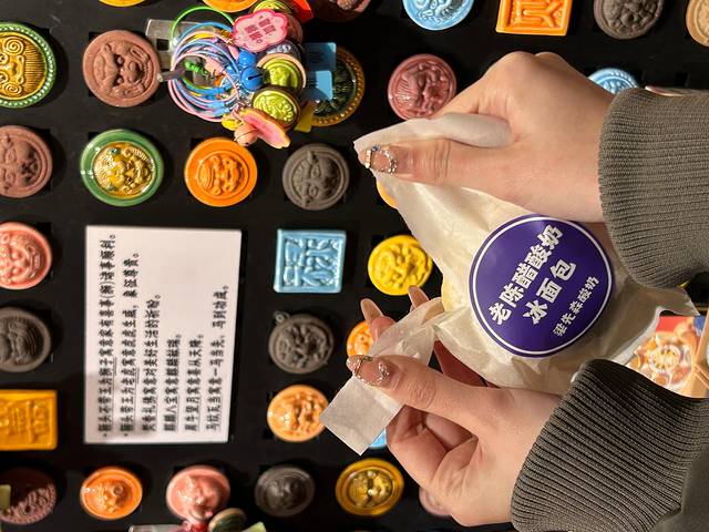 沙棘酸奶和老陈醋酸奶何有各的味道,喜欢吃酸一点的就选择老陈醋口味的,喜欢酸酸甜甜口感的就选择沙棘口味的,不喜欢都是可以现场免费调换的呢~他家还有新出的同款味道的冰面包,这俩就比较方便携带咯~