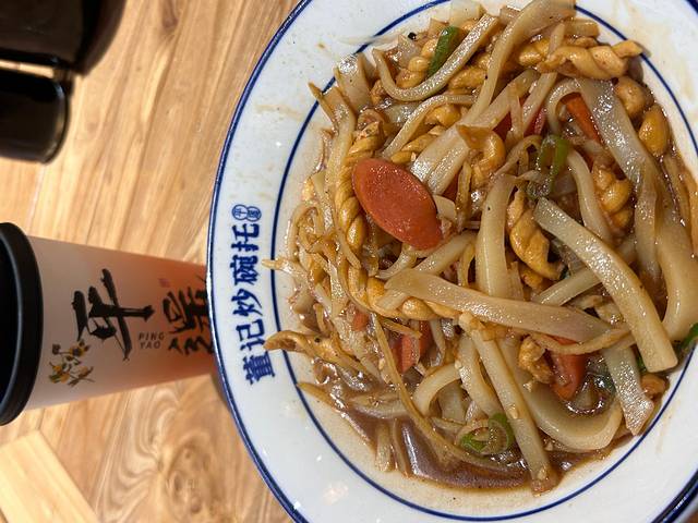 炒碗托一定要趁热吃,软糯Q弹,还可以按自己心意将其他食材和碗托一起炒,再点一杯沙棘醪糟汤,酸酸甜甜又解腻~
