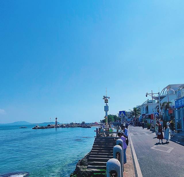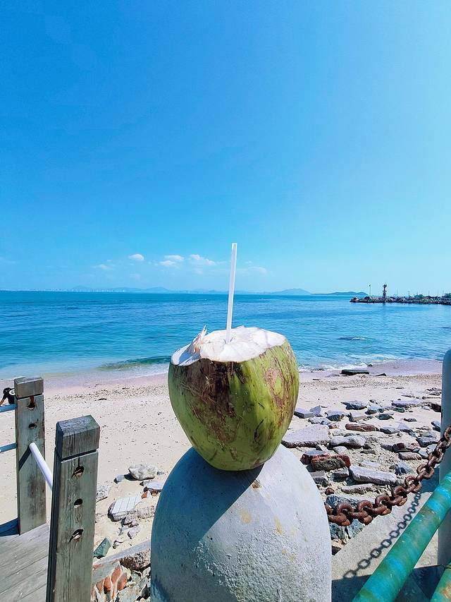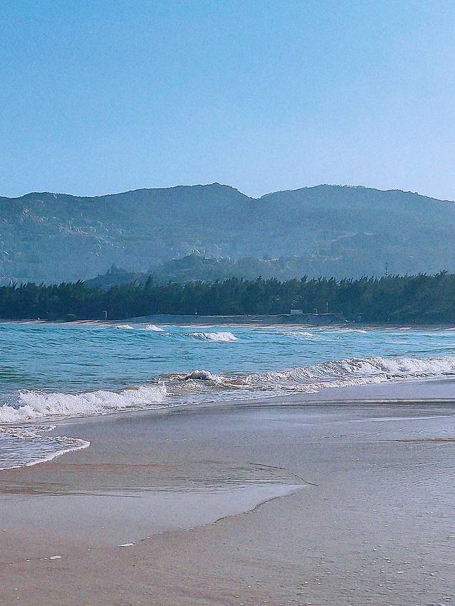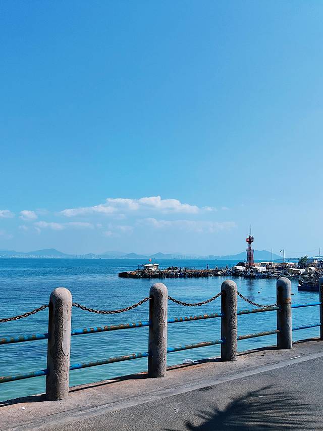 再往远处走走,那是寄居蟹的家。不过它们都还是寄居蟹宝宝,静静地看看,让他们快乐地长大。爬上另一边的金牛岭,从上往下看,海面更蓝了。有了阳光的加持,“波光粼粼”这个词语也变得活了起来。深邃的蓝,静谧的蓝,都是我喜欢的蓝。