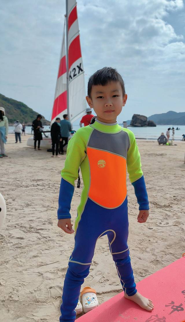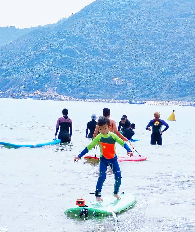 离开西岛,我们到了距离很远的后海村。这里的婴儿浪,适合每一个新手小朋友冲浪。小朋友们不怕水,平衡也好,总能得到许多快乐。成年人的体重大,想要成功站起来并不容易。