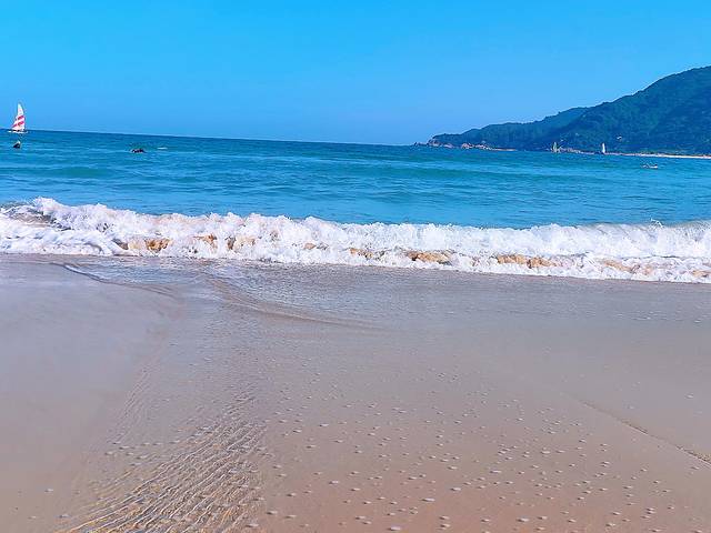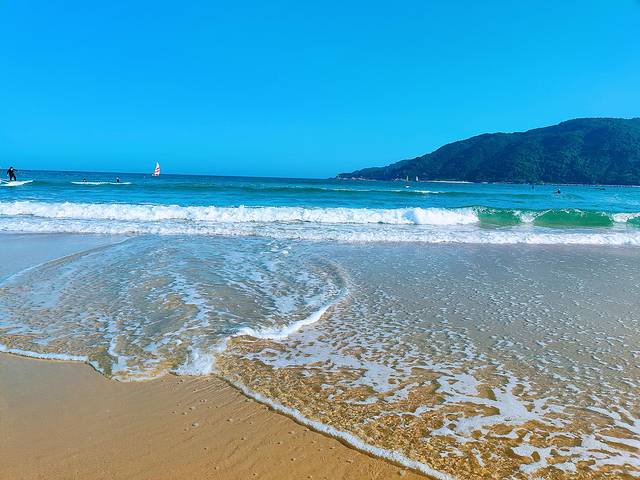 5.后海村冲浪的非常多,可以货比三家。成年人真的不建议画那个冤枉钱,我们家一个140斤的膝盖不好,那个站起来的动作不流畅,站起来了也很快掉下去。160斤的最多能站几秒钟,就又掉下去。只有那个40斤的小孩儿玩儿得比较开心,但还是掉进海里喝到了水。冲浪的范围内水不深,但对于小朋友来说,倒在水里还是不容易站起来,要请教练多关照。